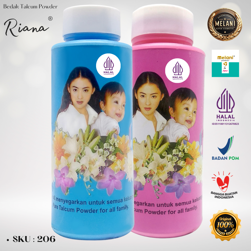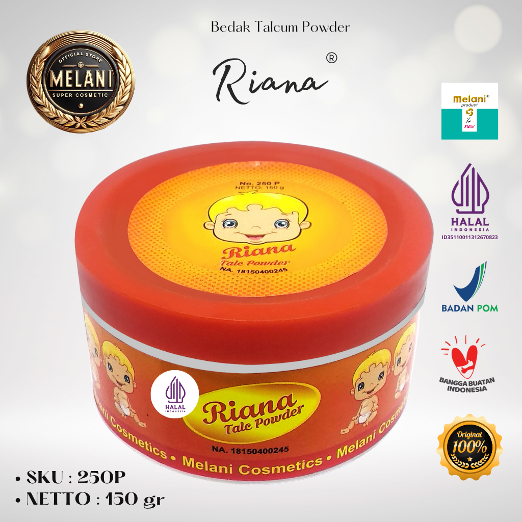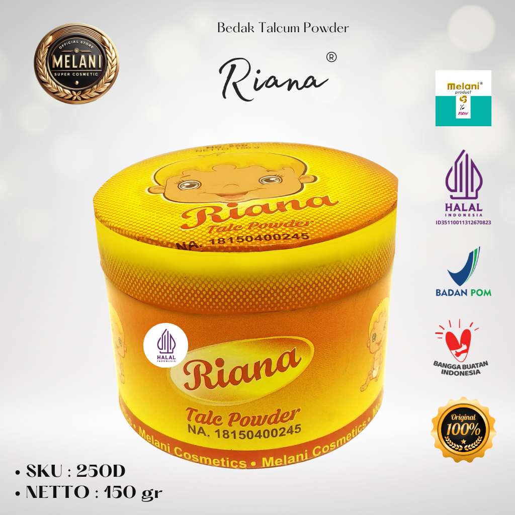 250 Riana by Melani Bedak Talcum Powder 150 gram | 2 Pilihan Kemasan – BPOM dan HALAL Terdaftar